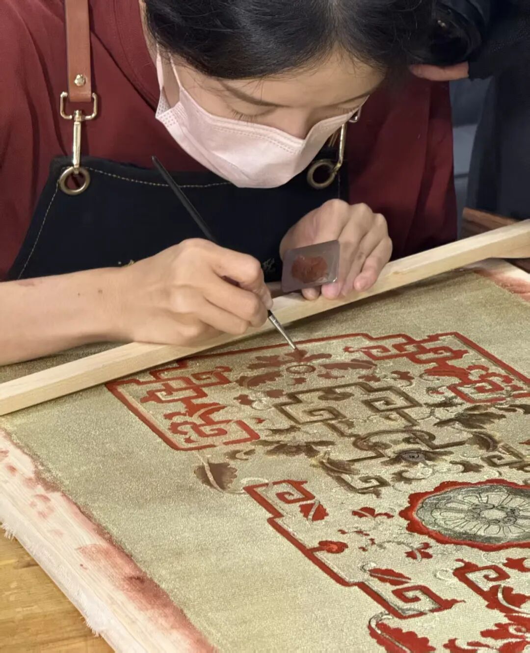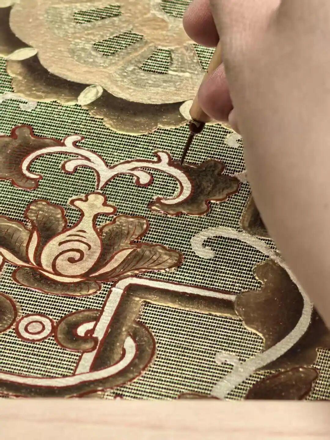 最终,漆纱项目联合团队通过现代科学检测与传统漆艺实践相结合,重建了“织纱打底、纸样粘合、双面贴金、描金施绘”的复杂工序,让这沉睡百年、独一无二的精巧工艺于2025年9月重新面世。