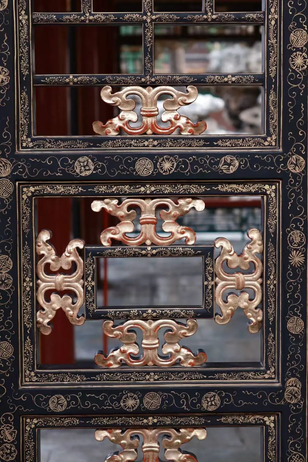 黑漆描金落地罩细节