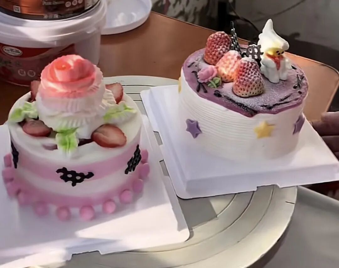 别看价格低,用料却一点不含糊。李大叔用国产动物奶油加乳脂做蛋糕,水果都是从本地批发市场新鲜采购的,就连10块钱的小蛋糕,包装盒成本都要1块5毛钱。