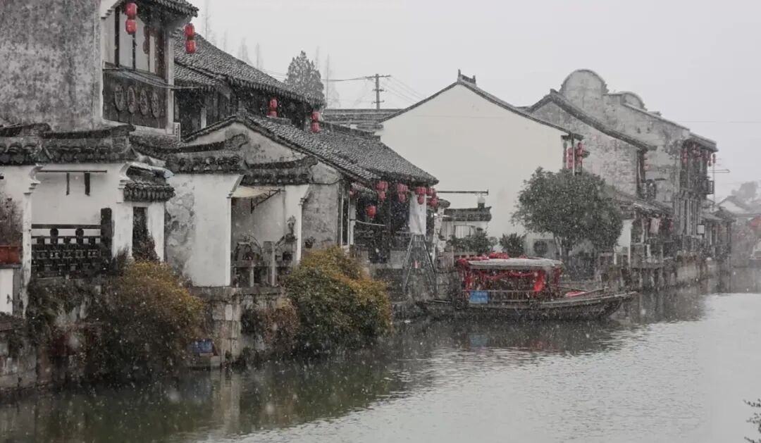 枫泾古镇迎来今冬首场降雪