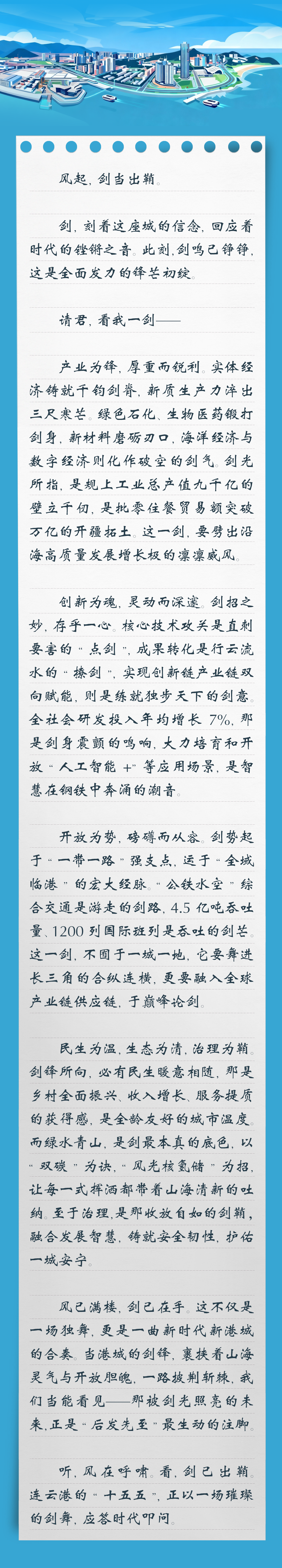 这是机遇之风,更是催征之风。连云港,这座伫立于山海之间的城市,衣袂已然飘扬,它早已听懂了风的语言——不是轻拂,是激荡;不是过客,是号角。