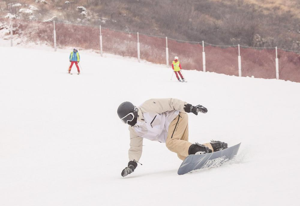 游客在河北省唐山市玉田县玉龙湾滑雪场滑雪(1月14日摄)。
