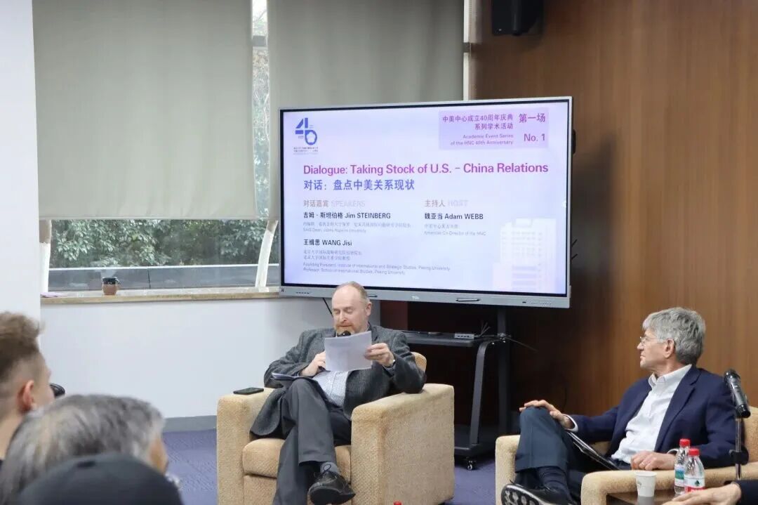 2026年1月15日,南京大学-约翰斯·霍普金斯大学中美文化研究中心举办了成立40周年系列第一场学术活动。约翰斯·霍普金斯大学保罗·尼采高级国际问题研究学院院长吉姆·斯坦伯格(Jim Steinberg)和北京大学国际战略研究院创始院长、北京大学国际关系学院教授王缉思以盘点中美关系现状为主题进行对话,由中美中心美方主任魏亚当(Adam Webb)主持。近百名中心师生与校友参加了该活动。