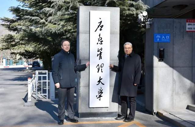 学校党委书记赵峰华(左)、校长任云生(右)共同为“应急管理大学”挂牌。图源:“华北科技学院”微信公众号