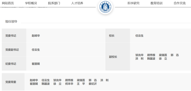 学校领导班子。截图自官网