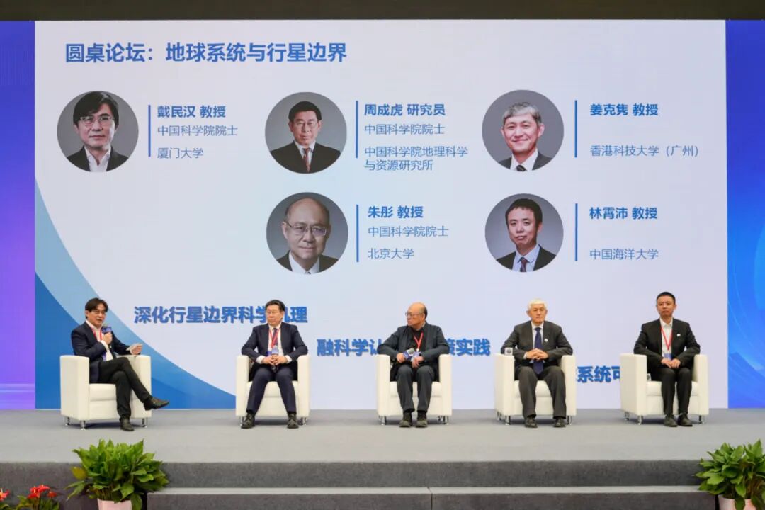 圆桌论坛环节,中国科学院院士、中国科学院地理科学与资源研究所研究员周成虎,中国科学院院士、北京大学教授朱彤,香港科技大学(广州)教授姜克隽,中国海洋大学教授林霄沛围绕“地球系统与行星边界”主题展开了精彩分享。中国科学院院士、IUGG中国委员会副主席戴民汉主持圆桌论坛环节。