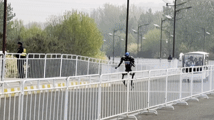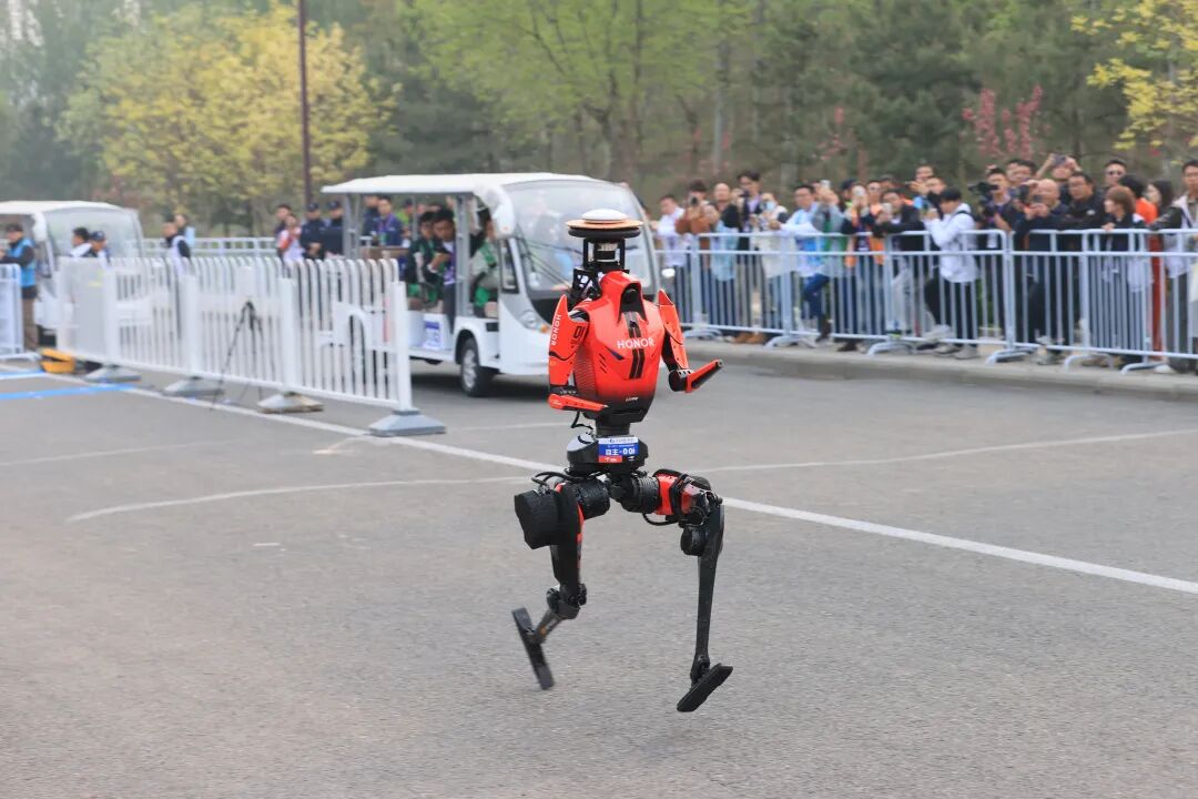 2026北京亦庄人形机器人半程马拉松排位赛开跑。孙佳蕊/摄