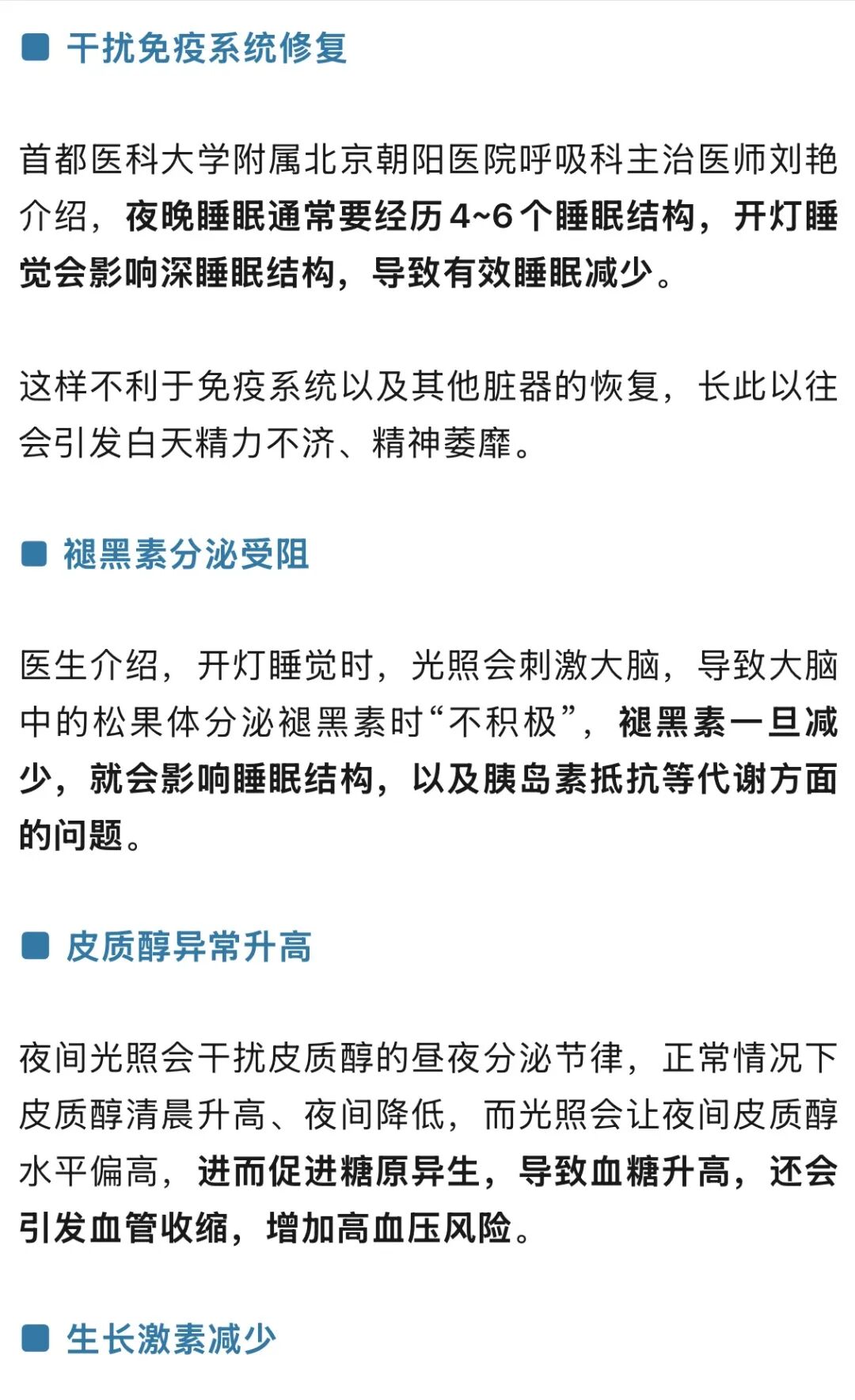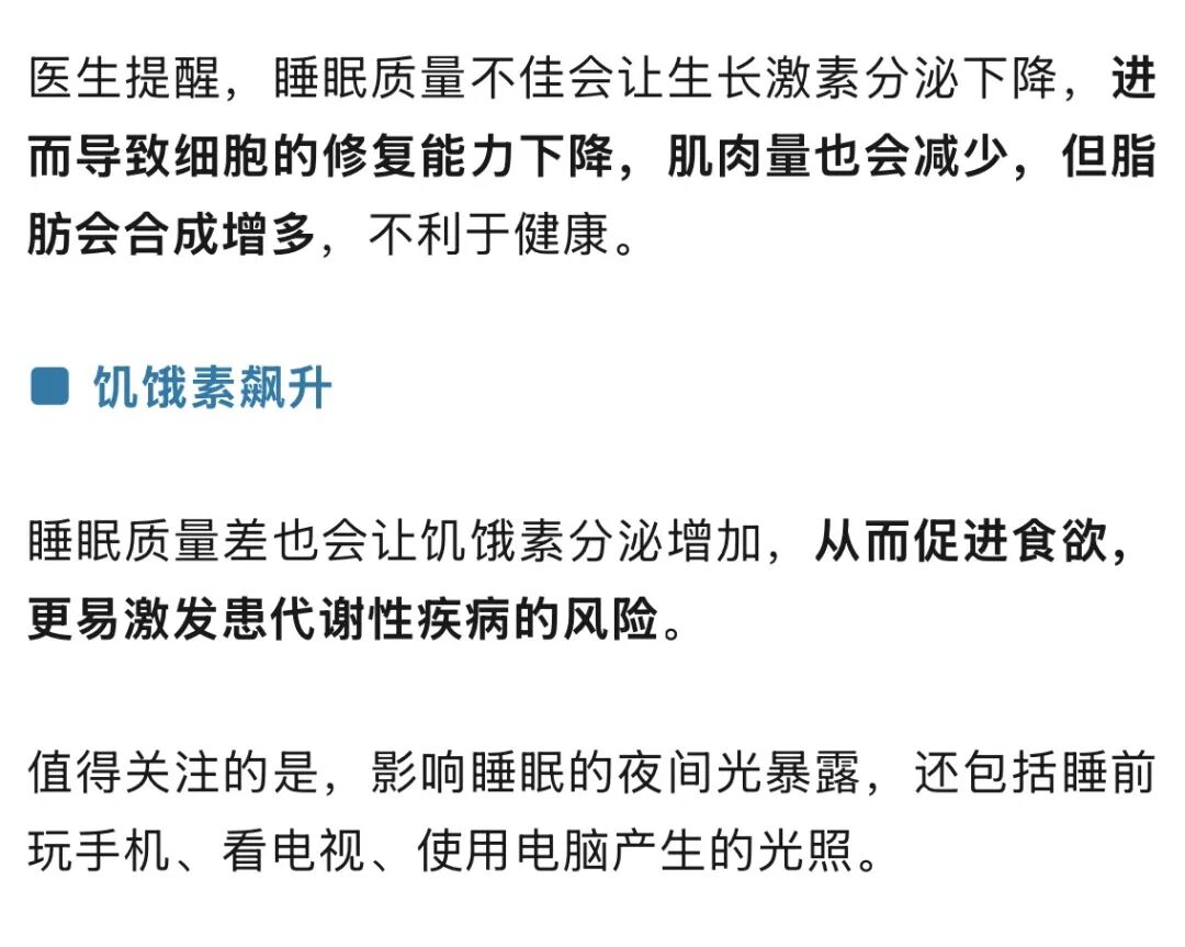 医生表示,开灯睡觉和肥胖、血压升高之间存在千丝万缕的联系。这是多系统生理紊乱共同作用的结果,核心机制在于睡眠时的光照会干扰生物钟、影响激素分泌。