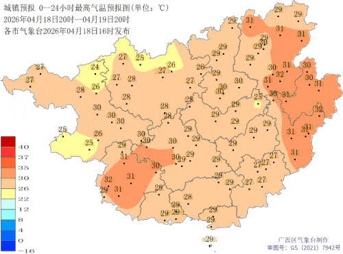 桂林市龙胜各族自治县气温最高(30.8℃)