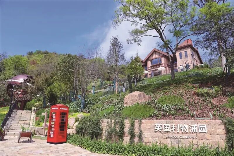 纯正当代英式花园,森林花园模拟英国原生林地,蜿蜒小径、月季花廊、睡莲池尽显英伦野趣,科茨沃尔德风格小屋搭配红邮筒,氛围感拉满。园区的“浅石红”与意、法园的红色系隔空呼应,细节处藏着欧洲园林的美学共鸣。
