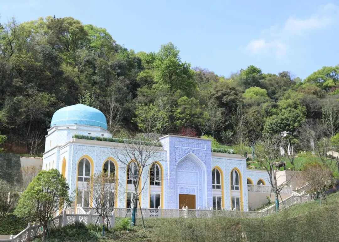 一出“时光隧道”即可抵达,是国际城市展园的“开篇之作”。展园以穹顶、尖塔和丝路纹饰为设计元素,山体高差打造层次景观。制高点“驼铃花园”的现代驼铃雕塑是核心打卡点,可拍出国风与现代风交融的大片。
