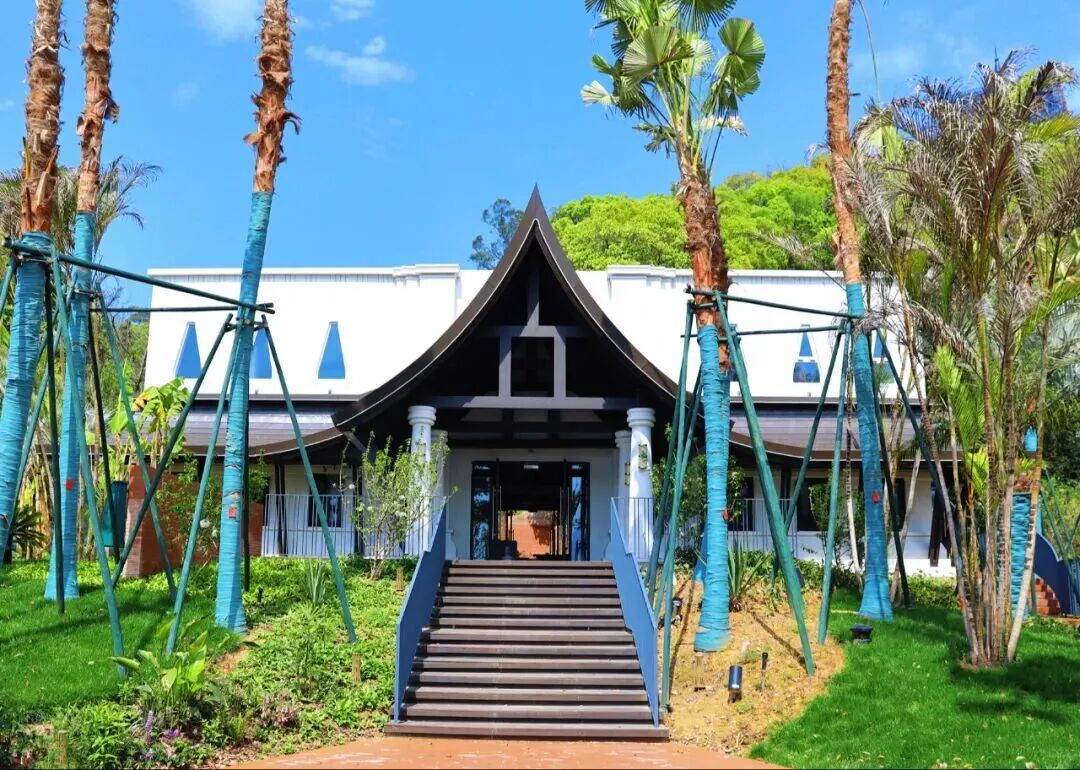 本届园博会唯一东南亚风貌展园,褐、白、绿经典色系搭配热带花园,异形竹亭“莲心亭”树影间若隐若现,蜿蜒游步道实现移步换景。