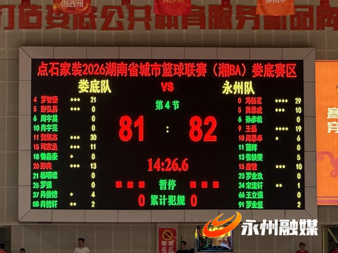 4月18日晚,娄底市体育中心,湘BA娄底队对阵永州队。终场哨响,81:82,比分定格。