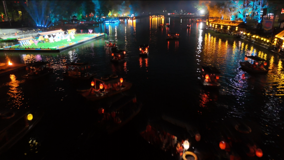 夜幕降临,上百组花灯点亮易水集,国潮风灯组灵动吸睛、动物灯组栩栩如生、昆虫灯组精巧灵动,灯光流转间与易水夜色交相辉映,光影错落、仿佛闯入梦幻的光影秘境。