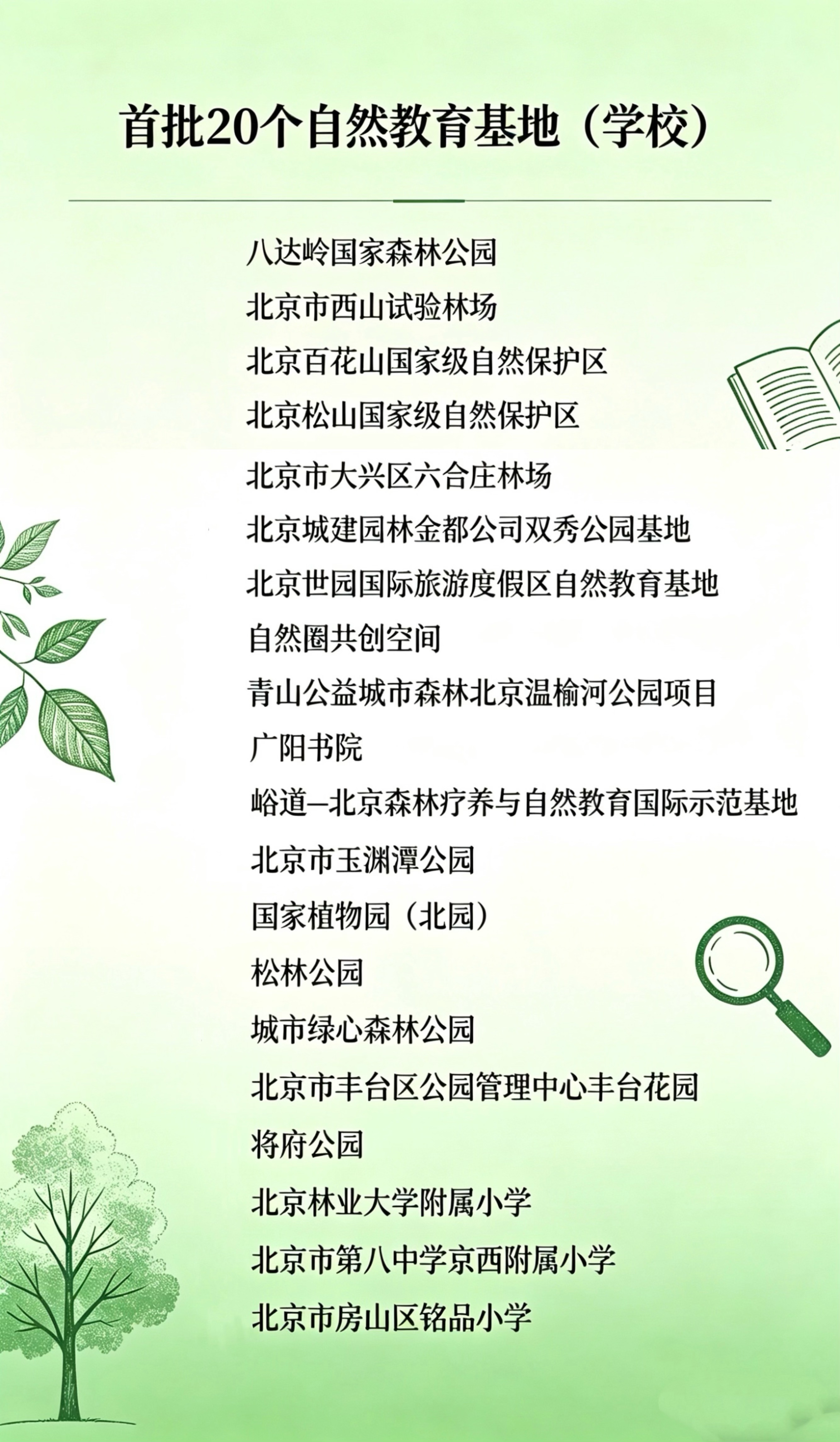 为进一步规范和提升自然教育服务质量,北京立足现有资源,在全市自然教育场所中,筛选了一批公众参与度高、运营情况良好、活动特色鲜明、专业能力突出的场所,推荐成为自然教育基地(学校)。并在本届自然教育大会现场,公布了包括八达岭国家森林公园、北京百花山国家级自然保护区、城市绿心森林公园等首批20个自然教育基地(学校)名单。自然教育基地(学校)认定后,将为市民提供更优质的活动资源,进一步提升自然教育服务品质,推动城市生态文明建设与区域协同发展。