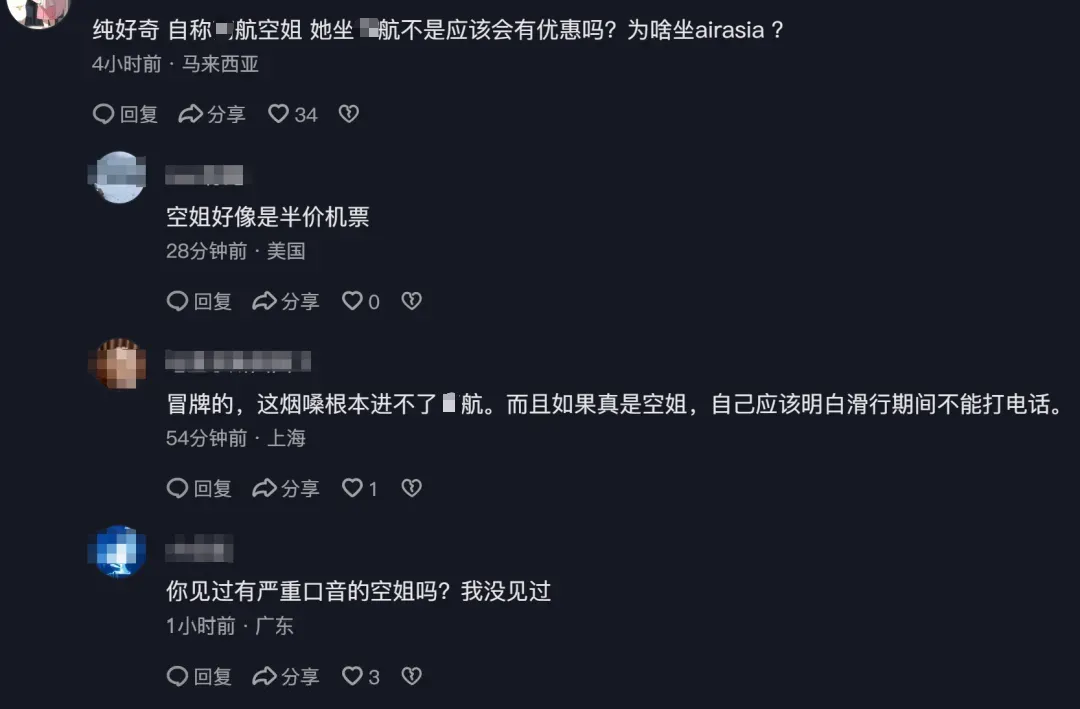 有评论区中,很多网友质疑该女子的空姐身份为冒牌。