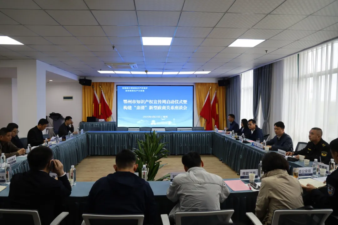 4月22日,鄂州市知识产权宣传周启动仪式暨构建“亲清”新型政商关系座谈会在鄂州楚商联合会顺利举行。活动由市工商联、市市场监管局(市知识产权局)联合市中级人民法院、市人民检察院、市司法局、市公安局、市发改委、市侨联共同主办,以“加强新兴领域知识产权保护,加快新质生产力发展”为主题。活动现场,鄂州中院与有关部门共同签署知识产权保护战略合作框架协议,建立跨部门、常态化协作机制,实现信息共享、案件移送、联合执法、快速维权一体化,构建行政、司法、仲裁、行业协会协同发力的全链条保护体系。