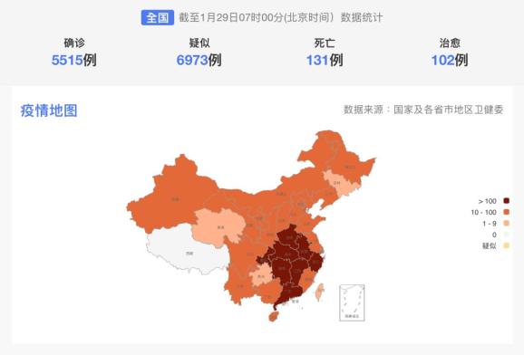 全国新型肺炎个案确诊5515例,