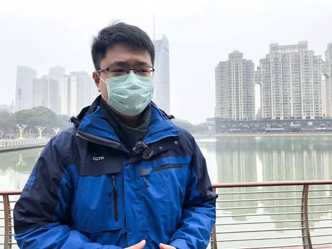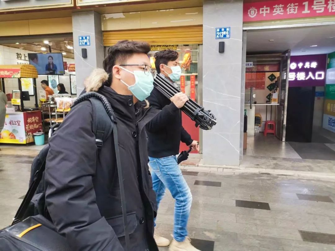 我们是CGTN第一个到武汉的报道团队,是四个男生。除了司机师傅之外,其他三个都是90后,我是记者,另外两个是摄影和制片。