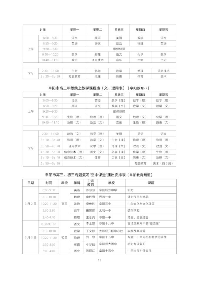 ①有机顶盒:空中课堂1-7频道、阜阳广播电视台教育频道。