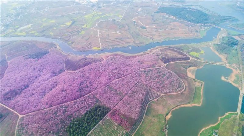 在黄平新州镇干板桥老草坪,有一片 300 多亩的樱花林。樱花盛开时,如雪如云,蔚然一片,是不能错过的赏樱绝佳之地。