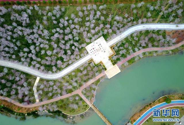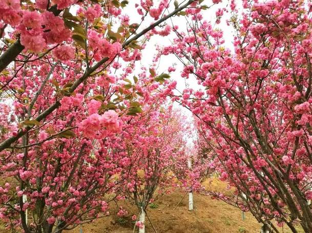 在湄潭县的象山茶博公园,分别有晚樱、早樱、山樱花、冬樱花、云南樱花等不同品种、不同季节的樱花 20000 余株。