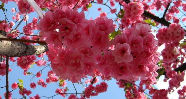 每到春天来临,河滨公园里百花争艳,美不可言。尤其里面的樱花盛开时,红白相间,随风飘动。