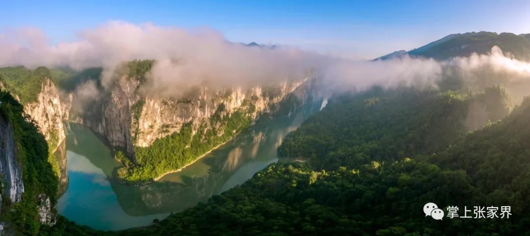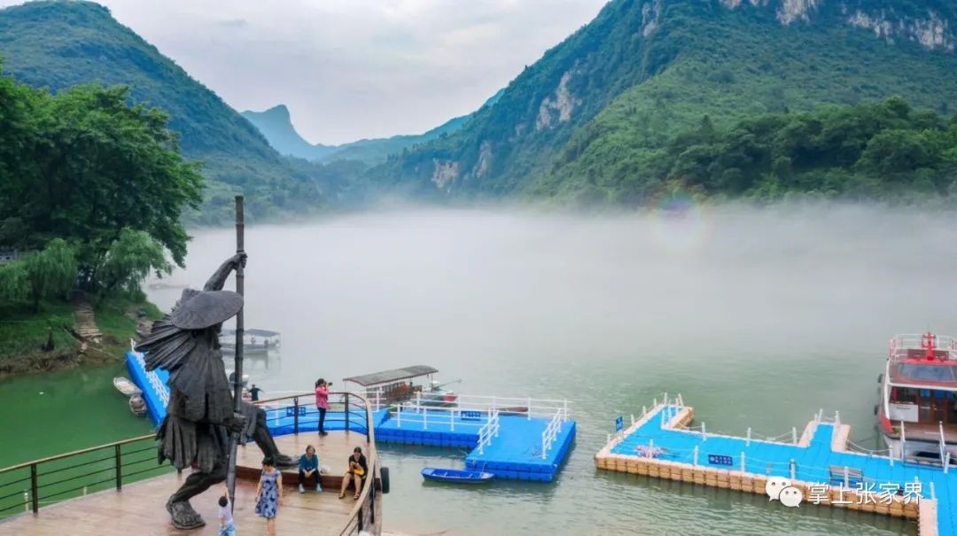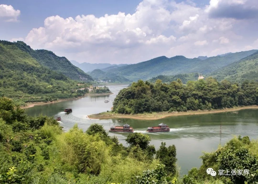 山水洞寨歌,多彩茅岩河。茅岩河景区以茅岩河为轴线,在张家界西部的桑植县、永定区范围内,面积约120平方公里。拥有茅岩河平湖游、茅岩河漂流、九天玄女洞、苦竹古寨、温塘温泉、玉皇石窟、红军体验园等多个旅游项目,还引进了新西兰喷射快艇。