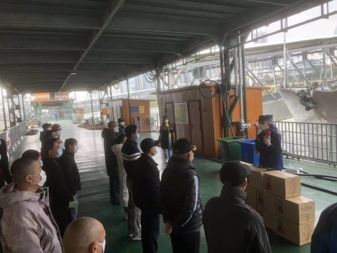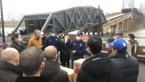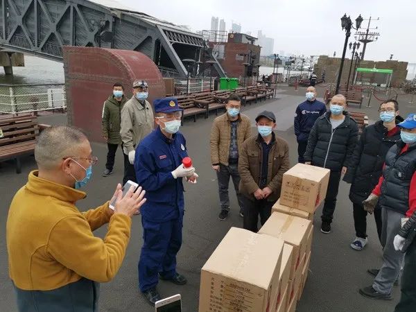 在消防安全培训完毕后,队员们恰巧遇到船员们送饭。原来船员们也有一项特殊的任务——每天要为武汉市抗疫一线工作人员制作中、晚餐各300份盒饭。厨师制作完毕后,船员们两人一组分包抬送至岸上交接。