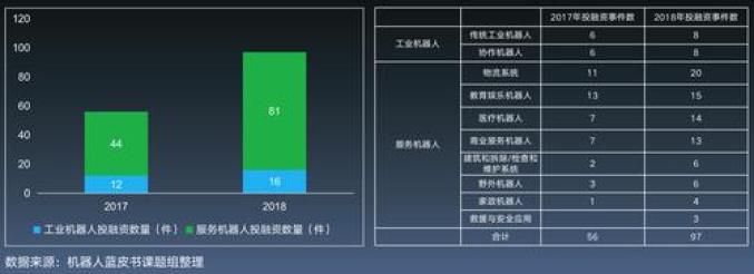 2018年中国机器人产业投融资事件中,被投企业多数为服务机器人企业,占比达83.5%;物流、教育娱乐、医疗、商业服务等机器人领域将持续吸引资本进入。