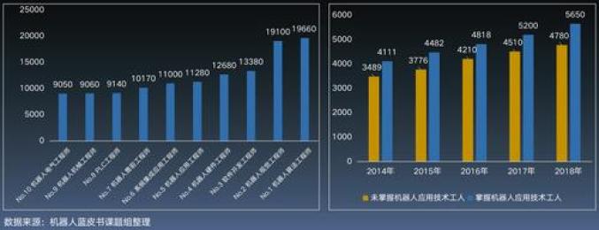 “机器人产业人才形成多种来源渠道,但人才供应量仍无法满足产业需求。”蓝皮书中提到,2018年,中国机器人研发工程师十大岗位平均月薪超过1万元;掌握机器人应用技术的一线工人,其收入和薪资涨幅高于未掌握机器人应用技术工人。