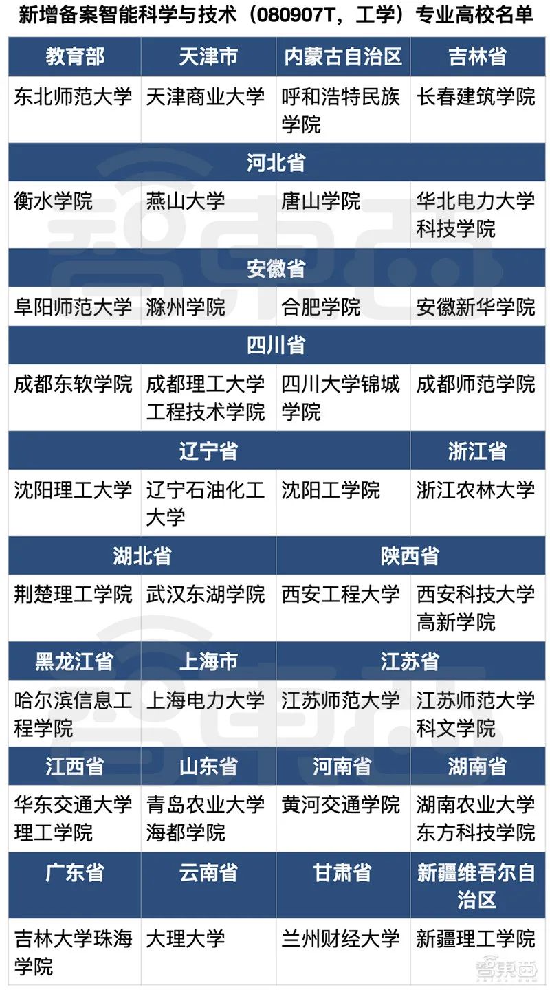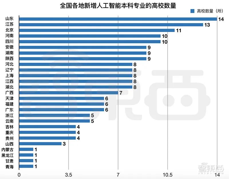 经智东西统计,新增人工智能本科专业的高校共有 179 所。