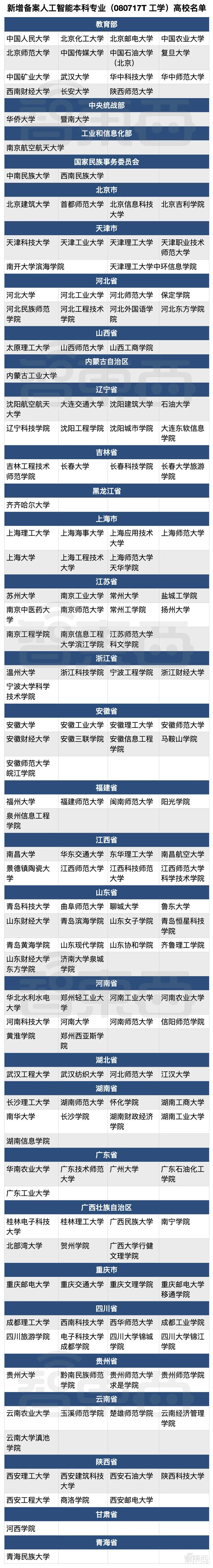 中国人民大学、北京化工大学、北京邮电大学、北京师范大学、中国传媒大学、复旦大学等179所高校新增人工智能本科专业。