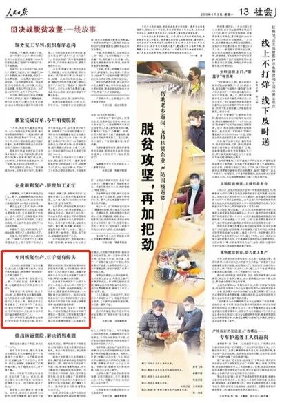 下图为3月2日,人民日报刊载《帮助老乡返岗、支持扶贫企业、严防因疫返贫——脱贫攻坚,再加把劲(决战脱贫攻坚·一线故事)》