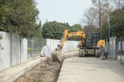 镜湖路(黄山路——花园路)新建污水管网全长1402米,主要采用的开槽埋管。自第一阶段黄山路到渡春路段去年9月底完工拆除围挡后,施工单位中铁四局集团有限公司正在进行的是第二阶段渡春路到花园路段的施工。2日,全封闭围挡的800多米路段已有近400米完成了埋管,现场机器轰鸣,一辆挖掘机正在开挖少年宫前的道路。预计5月份,该段道路的新建污水管网施工将全部结束。
