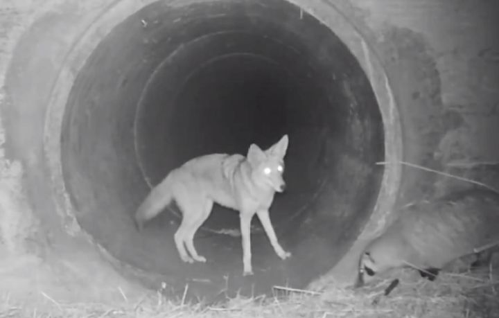 一只郊狼和一只獾并肩小跑进入一个坑道,在进入坑道之前,郊狼似乎还特意召唤了一下獾,似乎他们就是最好的朋友。