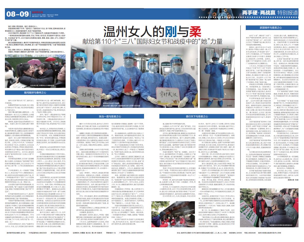 无论是助力温州经济高质量发展,还是抗击疫情,“她”力量是守卫温州的重要力量,撑起了疫情防控和复工复产的“半边天”。