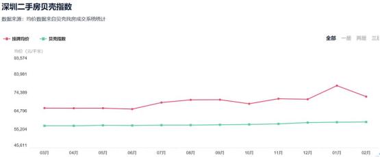 事实上,业主的心态已经发生了变化。深圳二手房贝壳指数显示,2月份深圳二手房挂牌均价为72254元,环比1月份的77979元大跌5725元,跌幅超过7%。北京二手房挂牌均价也出现下跌,从61678元跌至60384元。
