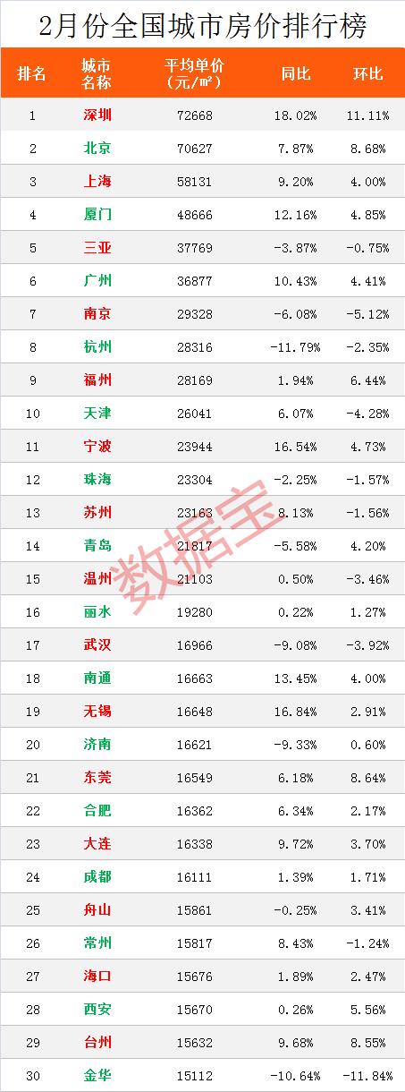 重点城市中,深圳2月份二手房均价达到72668元,同比环比均大涨超10%,价格再创历史新高。作为对政策最为敏感的深圳楼市,同时是房市的领头羊,似乎只要稍微给点阳光,它就能灿烂给你看。不过有分析人士指出,2月份二手房成交基本冻结,多为1月份成交的延续,价格实际意义不大,且统计样本、成交结构性等因素,也会影响数据的科学性。因此,不妨综合多找几个信源,来看看深圳二手房价是否真的创出历史新高?