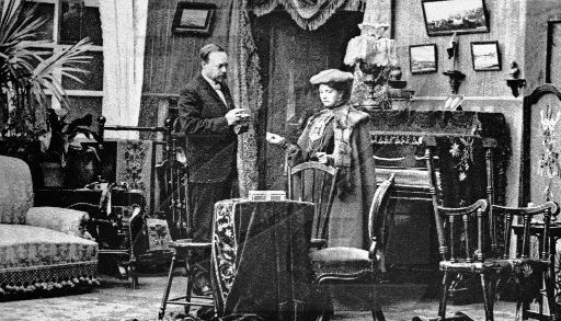 娜拉的离家出走,在社会上引起轩然大波,于是《群鬼》里的女主人公阿尔文太太尽管对荒淫无度的丈夫不满与愤怒,还是忍气吞声留在家里。结果她发现丈夫去世后家里又闹鬼了,原来是儿子和女仆、也是他同父异母的妹妹在调情。不幸的阿尔文太太是旧礼教的牺牲品,“鬼”这一象征意象包含着不可告人的家族丑闻、阴魂不散的亡者、饱受毒害的生者。《群鬼》在1883年首演并引起轰动,把易卜生再次推到社会舆论的风口浪尖上。
