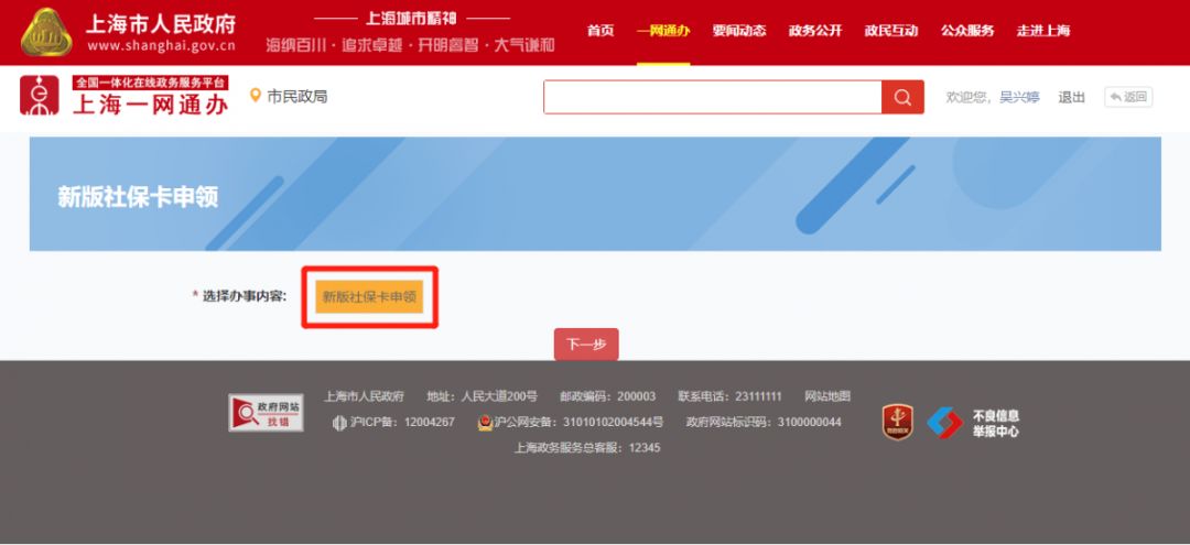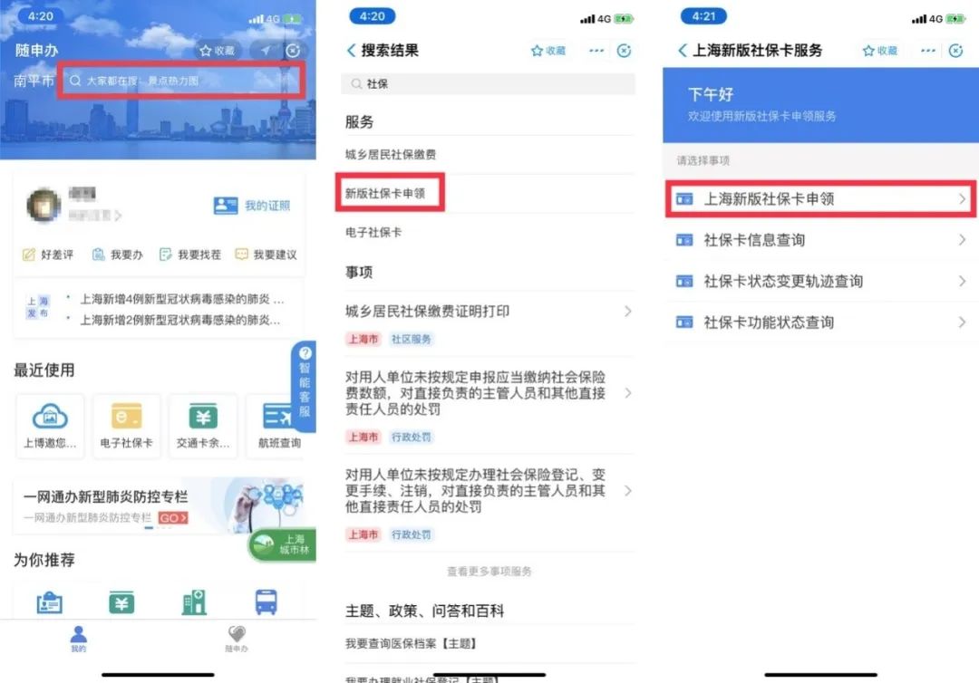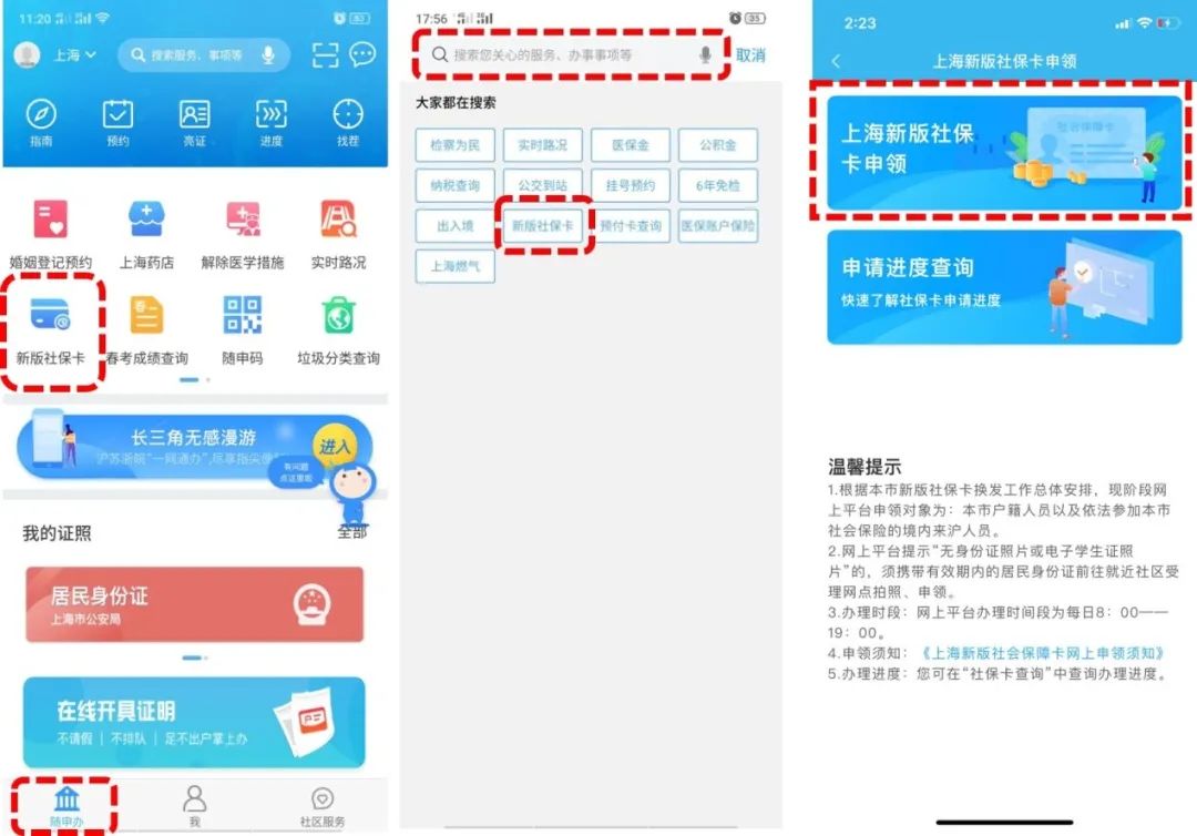 或搜索“新版社保卡”→进入“上海新版社保卡申领”。