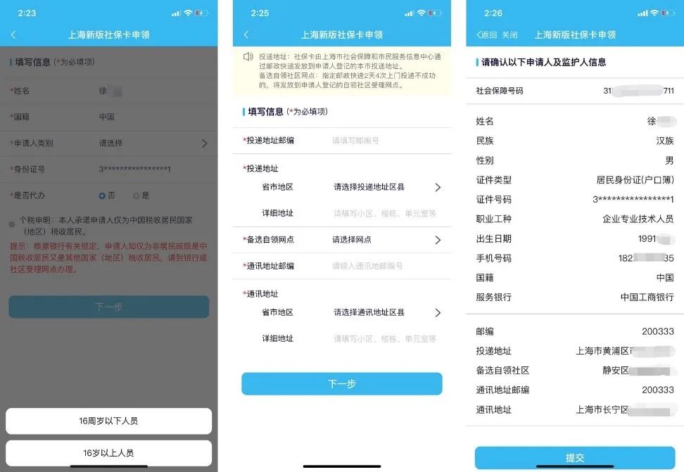 填写个人申领信息表→点击“下一步”完成