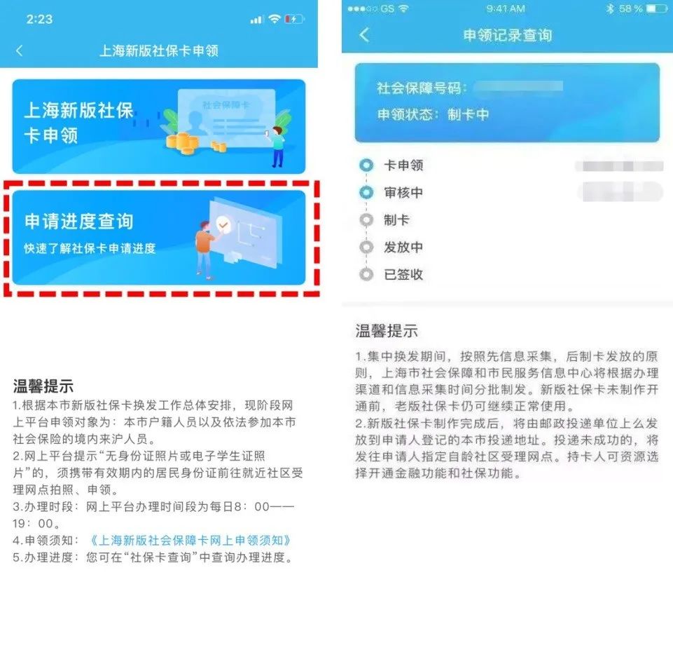 点击“申请进度查询”,即可随时掌握“新版社保卡”的办理进度。