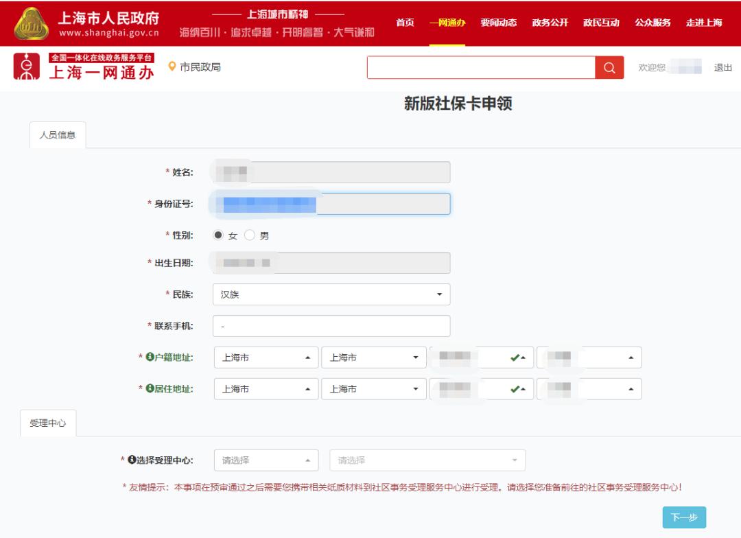 扫描二维码登录→点击“新版社保卡申领”→点击“下一步”