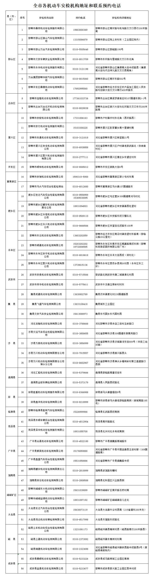 (附:全市各机动车安检机构地址和联系预约电话)