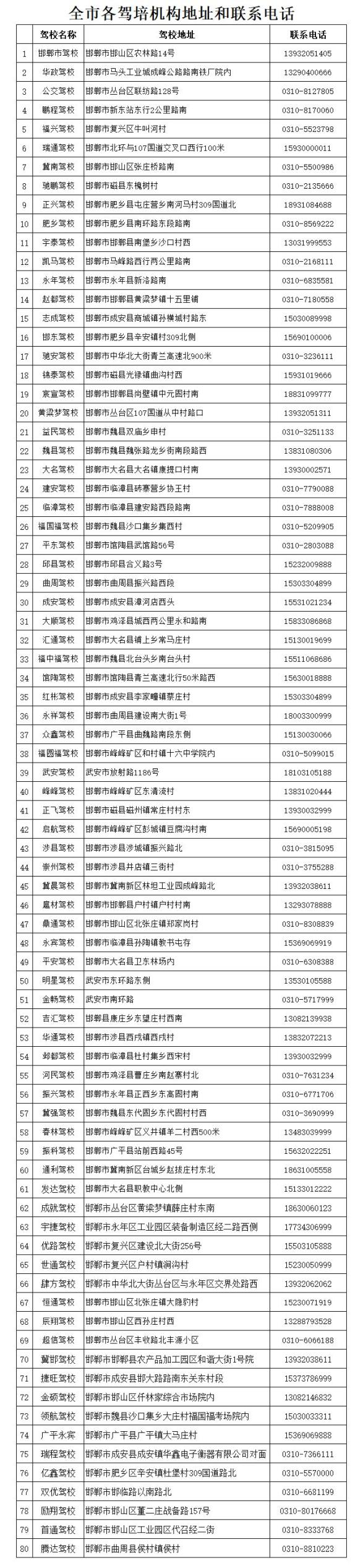 (附:全市各驾培机构地址和联系电话)