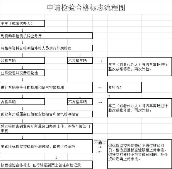 预约→业务受理→核发机动车检验合格标志
