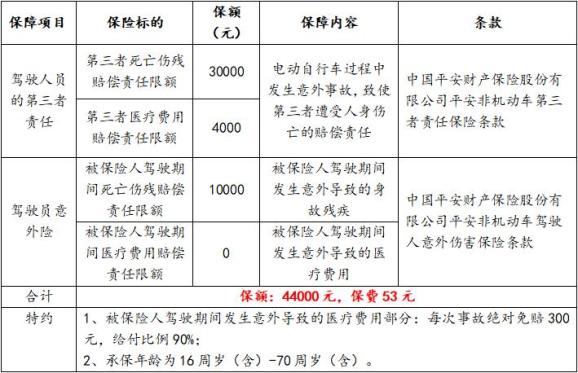 为保证车主及第三者人身安全,发生交通意外时获得必要的赔偿,鼓励市民上牌时购买电动自行车保险,保险产品有如下三种方案: