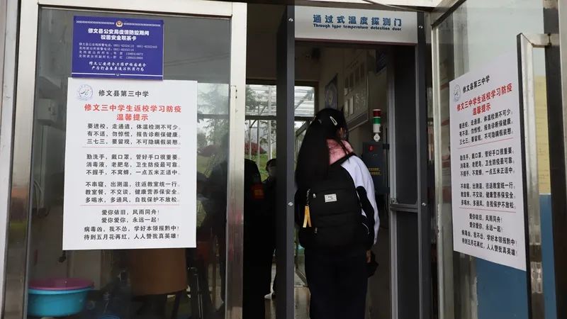 自省委省政府研究确定了全省高三初三年级3月16日正式开学时间以来,修文县委县政府高度重视,多次召开专题部署会议,研究多种防疫措施,修文各部门积极配合各个涉及高三、初三学生开学的学校积极落实各项防疫措施。3月16日,修文县高三、初三年级已顺利开学。 3月16日早,记者在修文三中看到,进出学校所有人员都必须要通过学校门口“通过试温度探测门”,体温正常者经过消毒才能进入学校;校内,九年级各班的班主任正在给本班到校学生开展新冠肺炎疫情防控知识培训,组织学生观看全国疫情防控宣传片,讲述全国疫情防控工作中的先进事迹。 据修文三中九年级(一)班班主任贾佐慧和九年级(二)班班主任姚文豪介绍,之所以把这些内容作为开学第一课,是为了让学生全面了解疫情防控知识,在校期间能够做好自我防护。从课后了解情况来看,效果很不错。同时是想通过这样的教学,让同学们了解,我们能够开学不容易,从这个方面激起同志同学们的斗志,然后把全身心的精力都放在我们的学习上来,唯有以努力学习的方式来回馈回报我们的社会。为学生普及疫情防控知识的同时也在为学生正三观、树榜样。 据了解,修文三中在接到3月16日正式开学的通知以来,学校领导就组织涉及的教职工全部返岗,对全体学生进行全面摸排,入学前要进行体检、核酸检测,确保安全的学生才能到校开学。为落实“三不交叉”措施,学校在开学前就对全校平面图进行细化研究,把课堂和就餐点分开,实行一个课堂两个就餐点,严格按照间隔距离要求就餐,由学校老师送餐到指定教室,学生按姓名就座就餐,不能随意走动;课间活动区域、厕所也在实行专班专用,不能交叉使用;并按照程序规定,对疫情防控物资的使用和废弃物处理实行台账登记,做到数据清楚,心中有数。 修文三中校长谌业新告诉记者,党和政府各级领导高度关注教育,高度关注学生的生命安全健康,学生到校以后,口罩是由政府保供的,学校的防控物资84消毒液、酒精等已经全部采购到位。目前全校初三年级九个班总共498名学生已经有443名到校。谌业新表示,学校目前实行每天一次全面调度,保证学校的教学和防疫同步推进。同时,不能返校不等于让孩子在家玩,各班主任、各德育包保教师,必须严格按照教导处拟定的计划,在本周内继续实行空中黔课教学,关注这些孩子在家里面的学习情况。还要求各班主任根据每个班级具体情况对这部分不能到校的孩子再发一封告家长告学生通知书,给他们讲明情况,告知他们在家接受教学,同时做好疫情防控。 谌业新还告诉记者,学校在开会的时候,老师们都在反馈,能够在这样优美的环境里教学,其实他们感觉已经很幸福了,有很多人都在负重前行,今天该由他们来进行这场没有硝烟的战斗,全校老师有信心有能力做好这项工作,一定不辜负社会的期望,把孩子们教育好,坚决让新冠肺炎病毒阻断在校外。(韦阳慧)往期精彩回顾