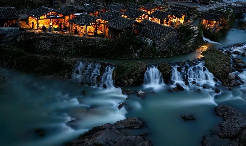 黄晨希 摄丽水街位于岩头古村,木制长廊尽显古朴与沧桑。长廊外侧设有美人靠。夜幕时分,明灭的灯火衬托着朦胧的月色,极富江南水乡的古韵。
